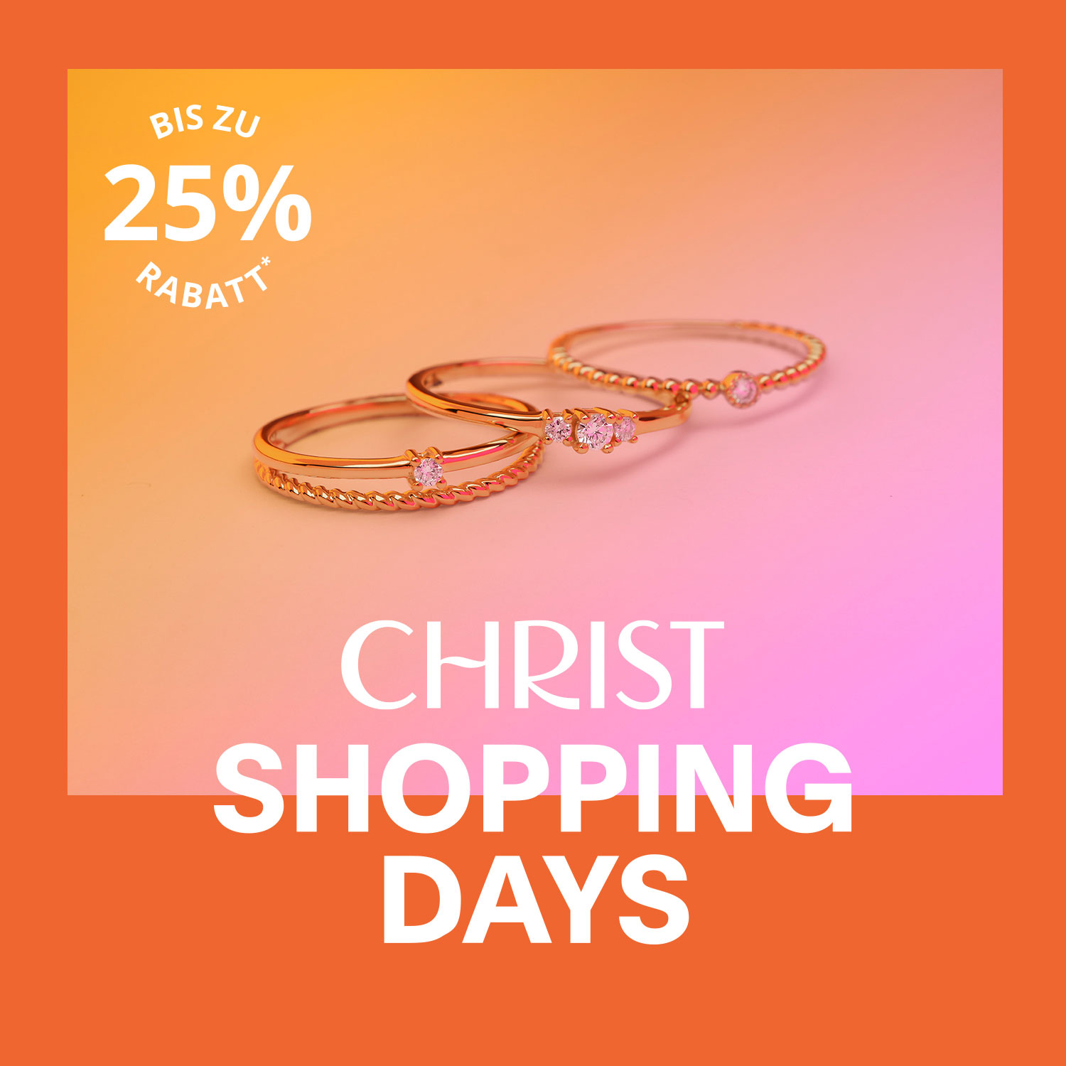Mehr Glanz für dein Budget: Während der CHRIST Shopping Days warten Schmuck- und Uhrenhighlights zu attraktiven Vorteilspreisen auf dich. Entdecke ausgewählte Lieblingsstücke aus verschiedenen Kollektionen – von funkelnden Diamanten bis zu zeitlosen Gold-Designs –