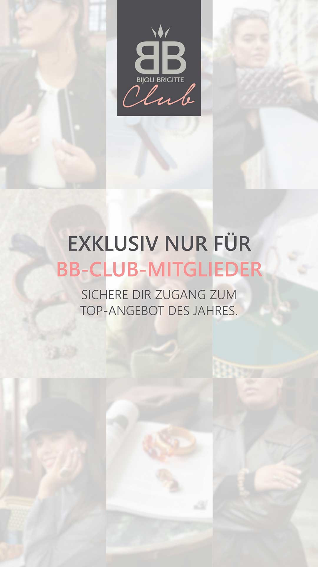 * Die Aktion gilt exklusiv für BB-Club-Mitglieder vom 07. bis 09. November 2025 in allen Bijou Brigitte-Filialen in Deutschland und im deutschen Online-Shop mit dem Code „member25“. Nicht mit anderen Aktionen kombinierbar. Der Rabatt gilt für das gesamte Sortiment, ausgenommen Echtschmuck, Taschen und Gutscheinkarten/Gutscheincodes. Eine Barauszahlung oder nachträgliche Gewährung sind nicht möglich.